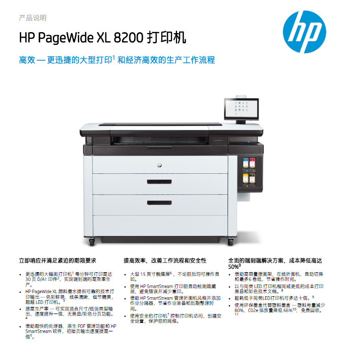 速度快的大幅面黑白,藍(lán)圖和彩色工程打印機(jī),總生產(chǎn)成本可節(jié)省高達(dá) 50%